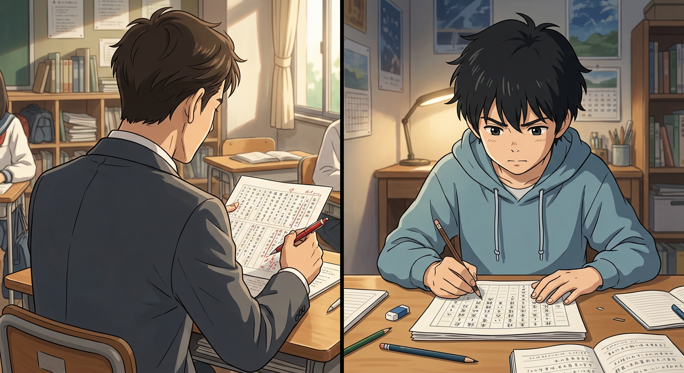 生徒はある日、郵便ポストに入っていた「あなたの作品を添削します」というチラシに惹かれ、先生に手紙を送ります。